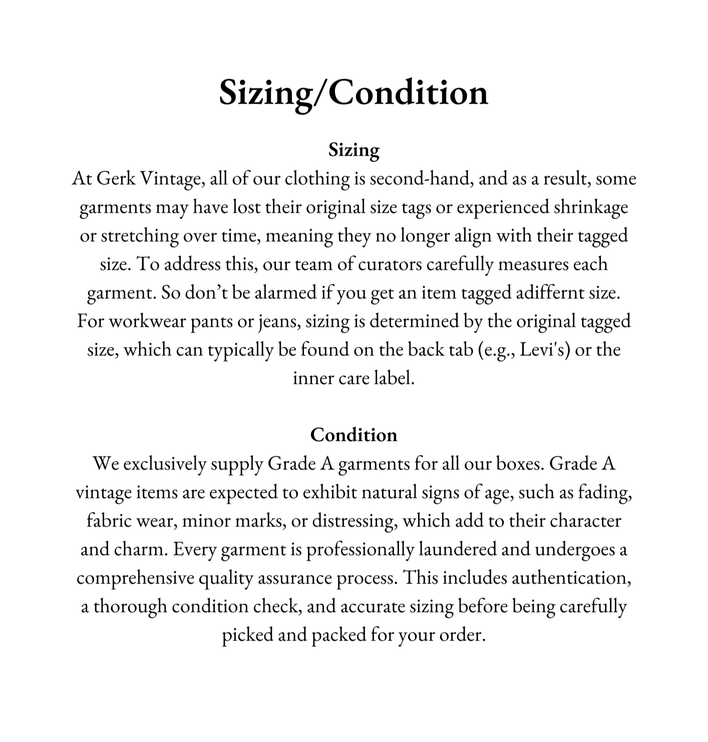 Sizing/Condition
